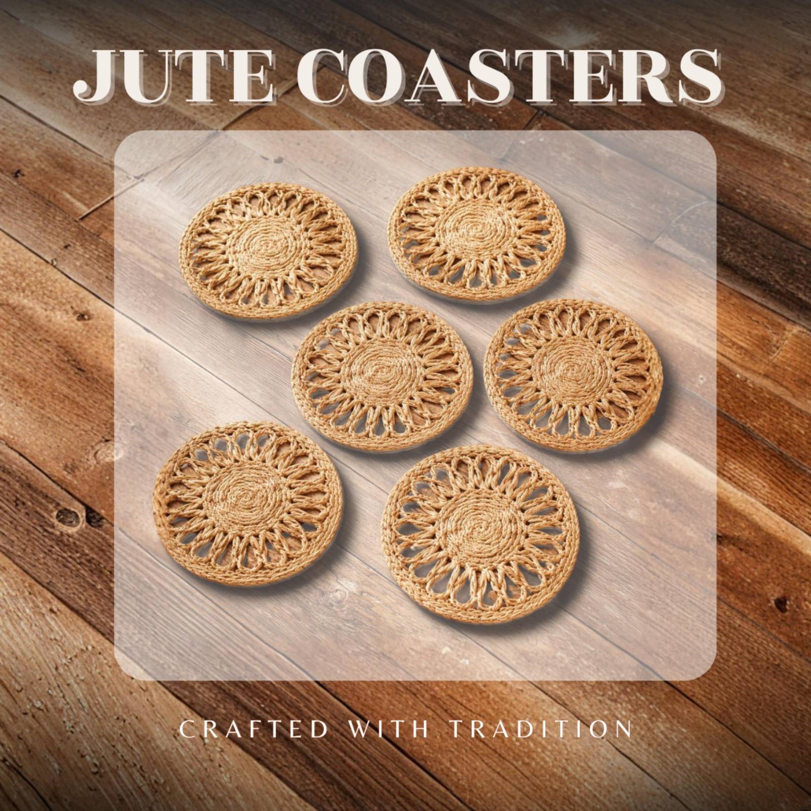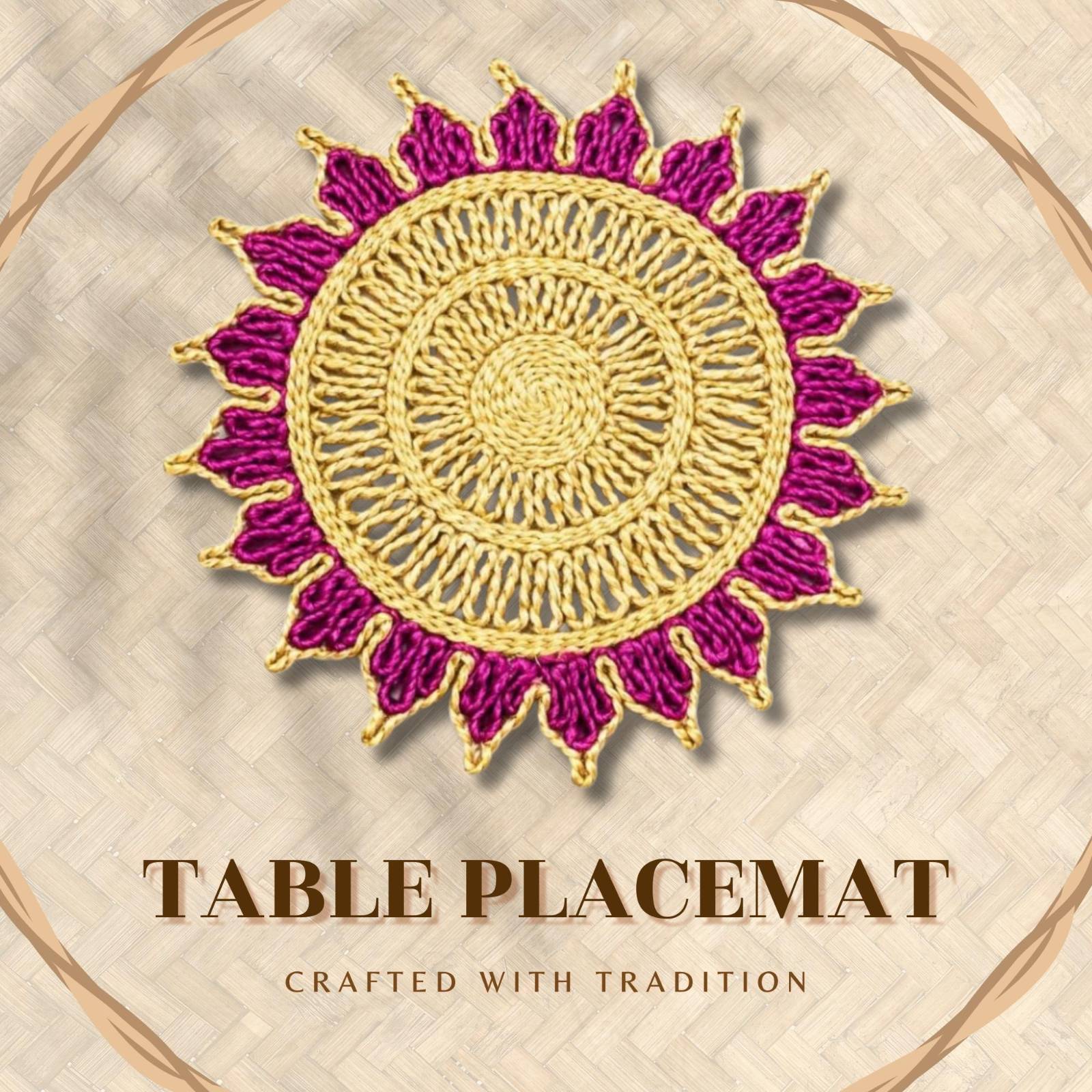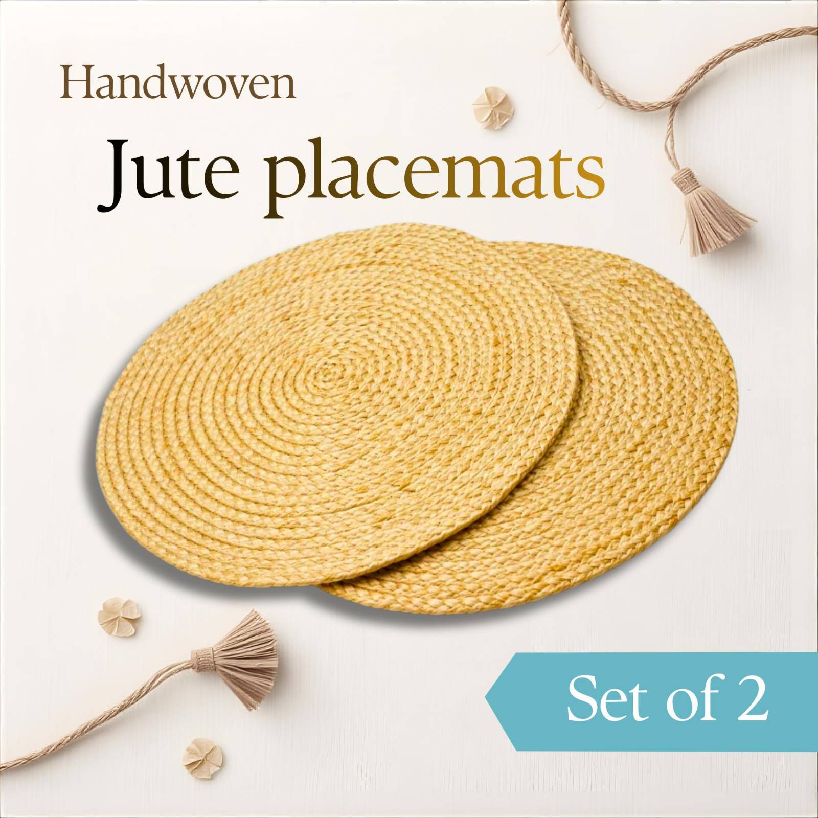 Bengal Handicrafts & Handlooms Braided Jute Round Placemats | 100% Natural Handwoven Table Mats for Dining, Bedside & Centre Table | Eco-Friendly Home Decor | Red, 14 Inch | Set of 2